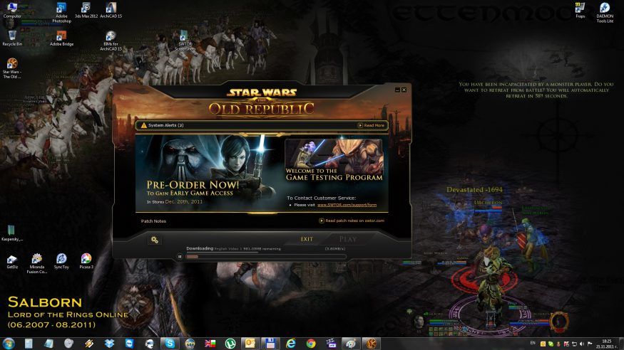 The game was released in spring 2007. I purchased it the Summer of the same year and left SWG for a few months to enjoy the gorgeous world of Tolkien with some good friends (from my SWG guild). After a while, I realized that my Star Wars addiction is too storng and despite the issues SWG had after its NGE patch (more on that in another article/video, some other time, perhaps). Came back to SWG, rejoined my good old friends in Old Republic Alliance (the guild I started SWTOR with) and cleared the few End-Game content challenges I had missed while I was gone. At the time, the guild was the best in the world, having cleared the latest instance first and long before the 2nd one managed to do it.
