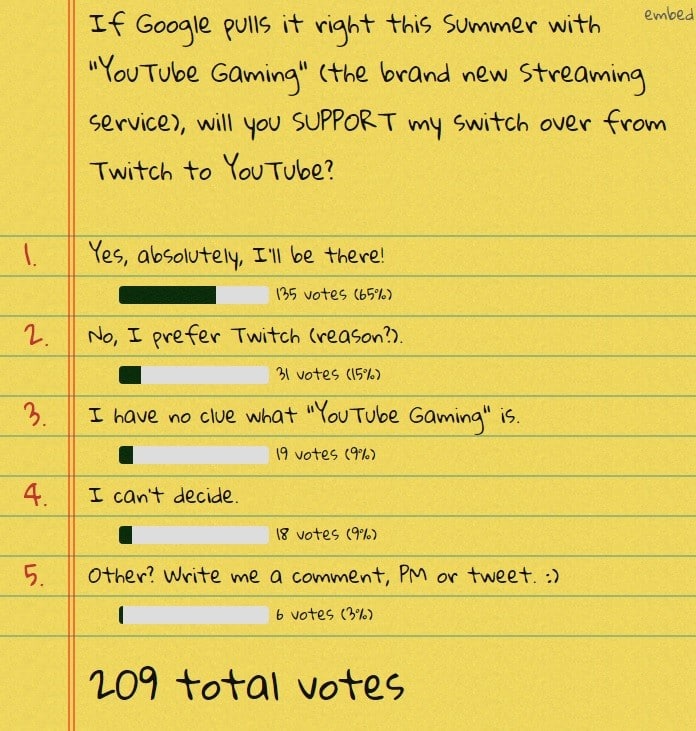Exactly the opposite to Twitch, YouTube Gaming has one big disadvantage or limitation if you will (because that’s the title of the paragraph, heh). It’s not popular enough yet to gain a slice of the general viewer base. But. It’s Google we are talking about. We know that what they want, they take. There are those little fails that some would remind us about, such as the attempt of Google Plus to beat Facebook. I personally never believed this to be their goal, not at all.