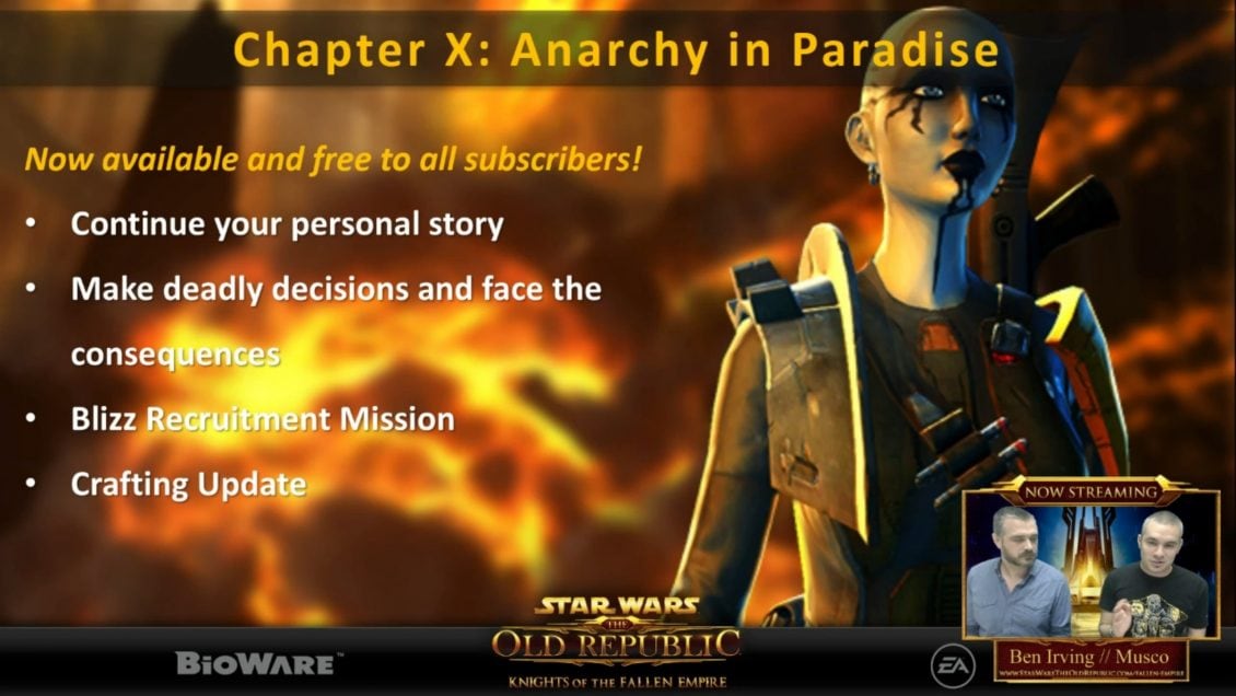 The Live Stream ended with the latest official Bioware Launch Trailer for SWTOR Fallen Empire Chapter X: Anarchy in Paradise.