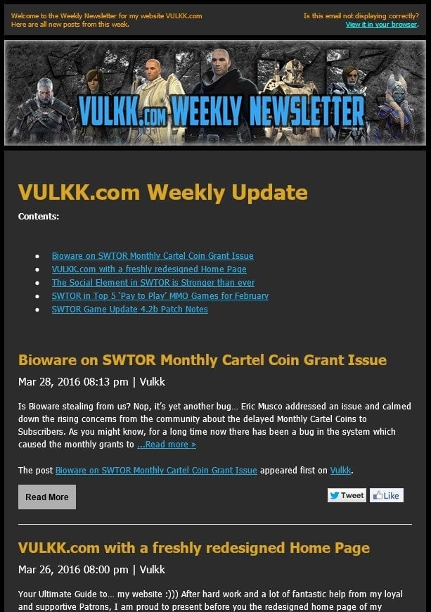 As you may know, I’ve been publishing a Monthly Newsletter with only the best, most popular and interesting videos and articles from my website VULKK.com. I did all by hand, personally selecting the links to include, trying to maintain a relatively short in length Newsletter bulletin, but also keep you informed of what Star Wars or Vulkk related happened during the month.