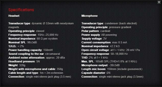 Here, to the right is the screenshot directly from HyperX’s website with a full detailed spec list.