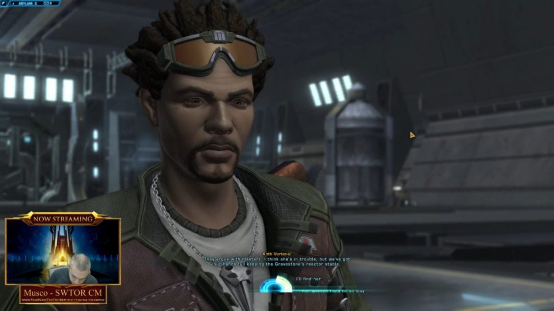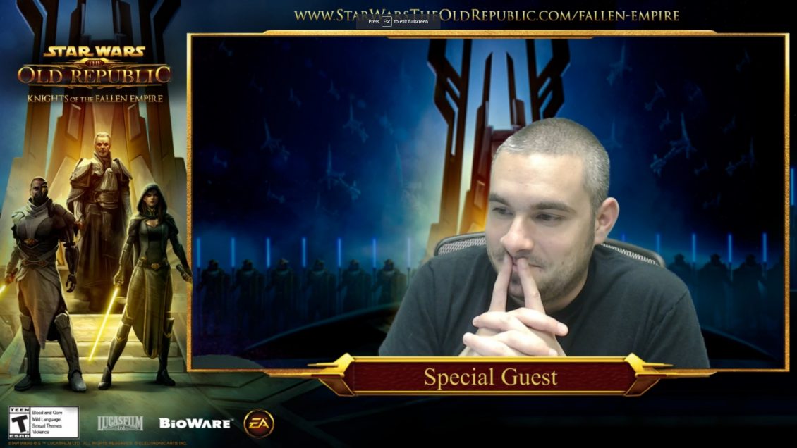 The live show started exactly on time – 14GMT. There was a short test pre-stream for Eric Musco (SWTOR’s Community Manager and host of this event) to tune every final setting before it begins. The real playthrough happened on POT5 (one of the so called dead servers).