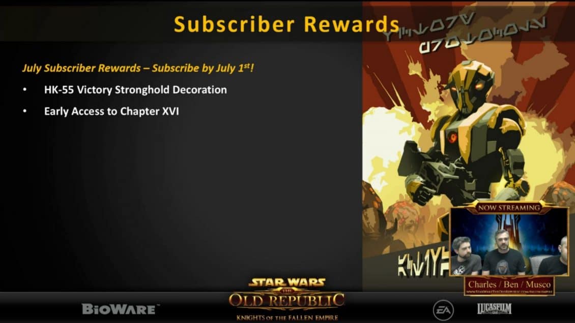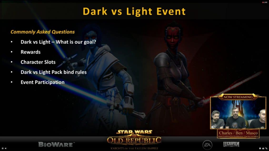 Why Bioware is doing the event – Ben talked about how last Fall Bioware made the decision to reward the long time and most dedicated players with the Monthly Subscription rewards program, they are making a chapter just for the long term subscribers. The Dark vs Light event is focused on celebrating the 5 year anniversary. Ben also believes that the rewards that are part of the event are the best the studio has ever released.