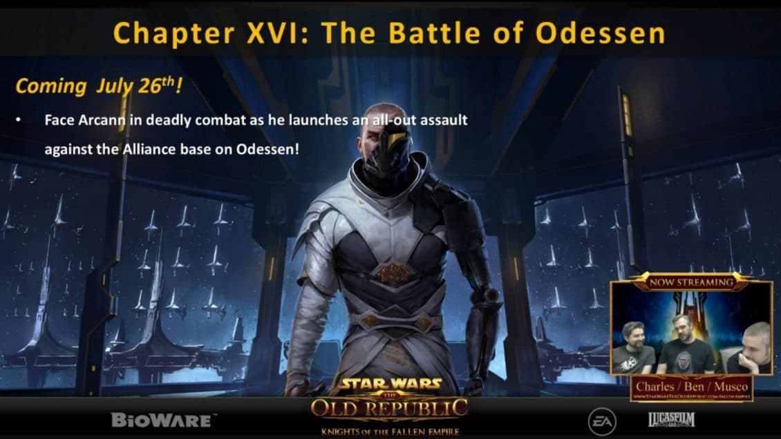 - Chapter 16 comes on July 26th. It’s called “The Battle of Odessen” and is the big ending of Season 1 of Knights of the Fallen Empire.