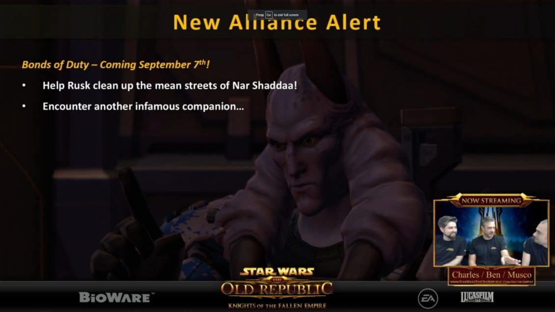 - New Alliance Alert – Help Rusk clean up the mean streets of Nar Shaddaa
