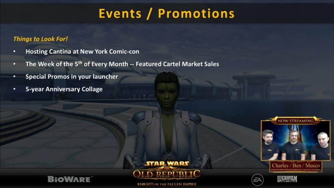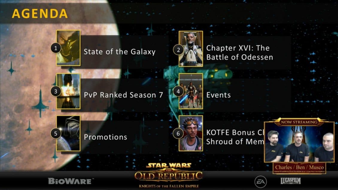 Bioware hosted the now regular monthly SWTOR August Producer Live Stream on 11th August. The event began at exactly 21GMT. Hosts were the 3 usual suspects – Eric Musco (community manager), Ben Irving (producer) and Charles Boyd (creative director).