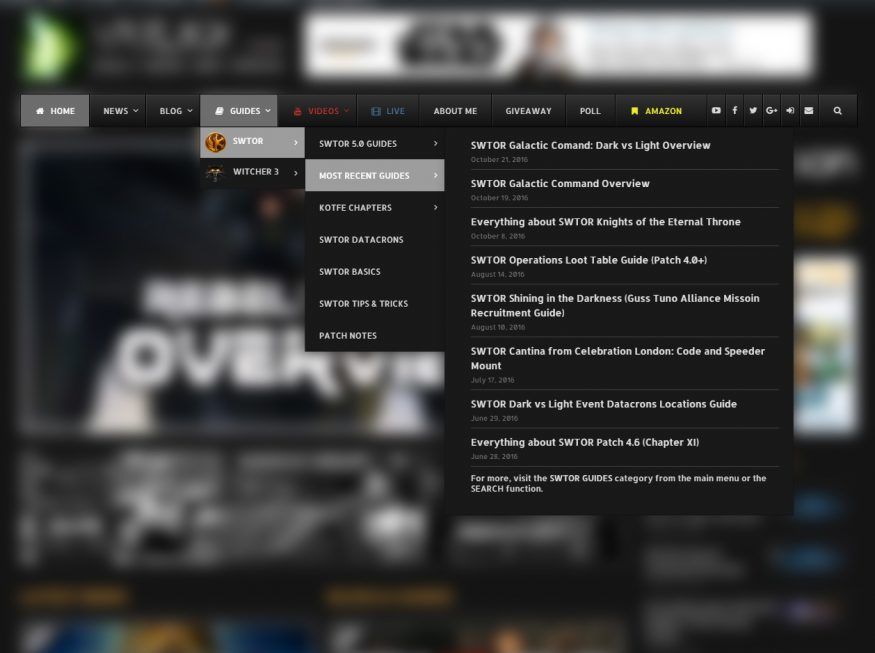 I would like to invite you to check out the reorganized Guides section located in the main menu. I have updated it and put some of my most popular articles to be easily reachable. Prepared the website for the giant SWTOR 5.0 update, reordered and resized the size of the submenus and have even done away with some of the rarely used parts of it (example: the most recently updated guides section).