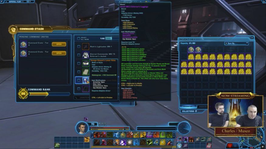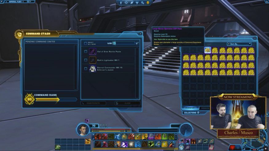 - Command Crate Opening – Musco made a promise last week during the previous live stream to open a crate and he did it tonight. He did it. Crates are rewarded one per Command Rank and they contain 4 random items. One of the items inside is always a piece of armor. Depending on your current rank, this item will be of different power/tier, but not always an item with a set bonus.