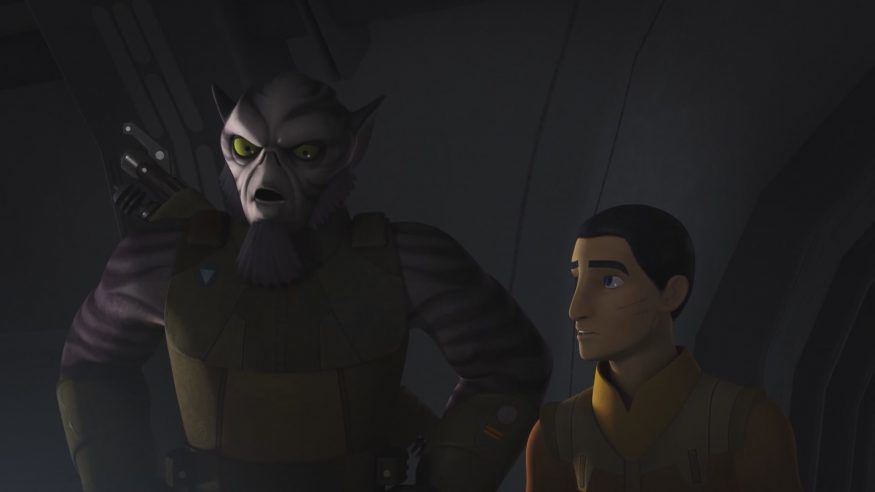 I’m glad he finally got a lead in an episode this season. It’s been a while since we had a chance to see him serious and in action. His role until now has been mostly negligible. Today he was entrusted by Hera to lead the party. When things go wrong down on board the ghost ship, Zeb shows himself as a firm, but also caring leader and when Azmorigan is lost, he refuses to abandon him, despite how disgusting and not worth this guy is to him. Zeb’s actions proved that Hera knows her own team of Rebels and she made the right choice to select him as leader over Ezra. That weird friendly relationship Ezra has built with Hondo over the years is a little weird to me, and as it seems, Hera isn’t very excited about it either.