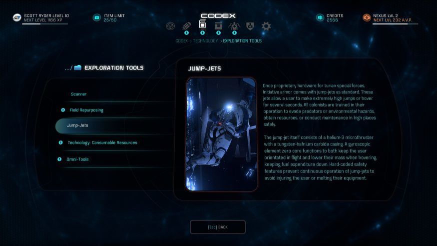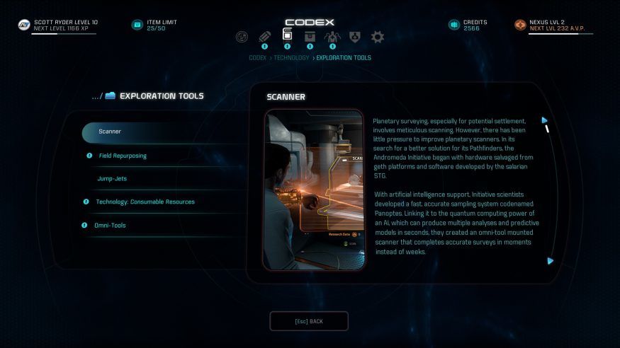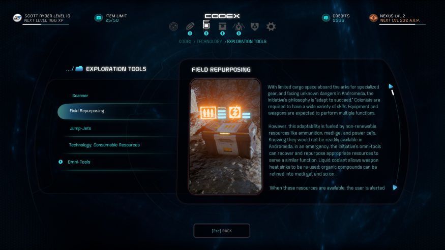 For the most part, though, it is entirely up to you as a Pathfinder to show your curiosity and eagerness to learn more about the technology you come across.