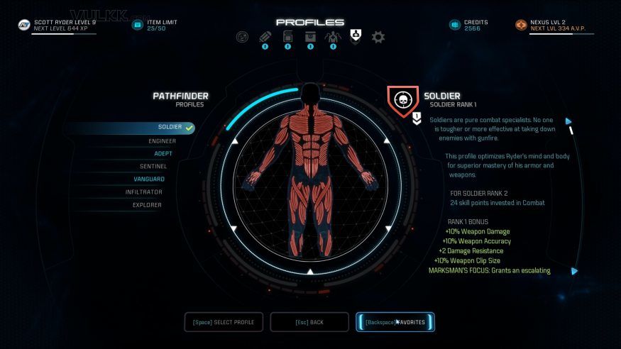 - Soldier – the most basic profile, suitable for new to Mass Effect players boosts weapons usage