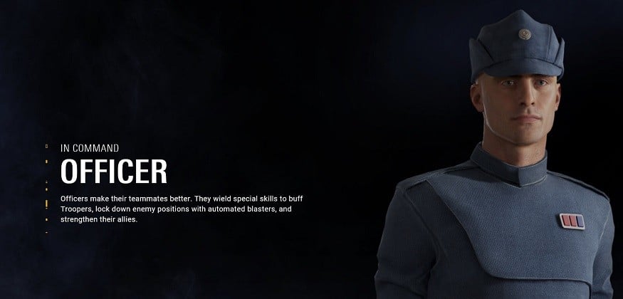 The expanded Multiplayer mode in Star Wars Battlefront II will offer you the chance to play 1 of 4 unique Trooper Classes – Officer, Assault Trooper, Heavy Trooper and Specialist. Each one of them has unique abilities and isn’t worth much on their own, but together they form an incredibly strong team.