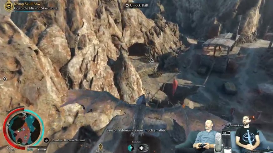 While you are controlling the Graug, it behaves slightly differently compared to when they fight on their own. For example, if you are not on its back, the Graug will throw rocks at its targets, but as a rider, you are not allowed to use that ability yourself as it would be too powerful and break the balance. From the back of the beasts, Talion will still be able to shoot his elf-arrows. Your Graugs can also be commanded to kill targets for you when you are not riding them.