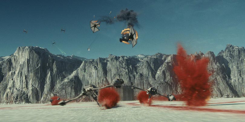On the mineral planet Crait, the First Order has trapped a group of Resistance fighters at what was once a Rebel Alliance outpost. You’ll see the First Order escorting the massive AT-M6 while Resistance fighters in ski-speeders attempt to stop them.