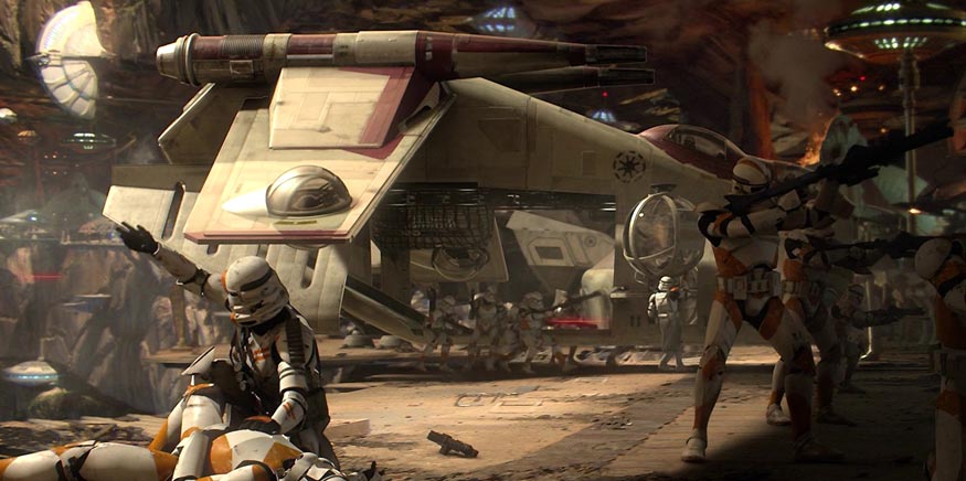 The Low Altitude Assault Transport/infantry, also known as the Low Altitude Assault Transport, Republic attack gunship or Assault Gunship, was a gunship used by the Grand Army of the Republic during the Clone Wars. Its role was to transport troopers as well as offering air-to-ground and air-to-air support for the Republic against the Separatists. After the formation of the Galactic Empire, the remaining LAAT/is were absorbed into the Imperial Navy. During the Galactic Civil War, LAAT/is were used by the Alliance to Restore the Republic against Imperial garrisons.