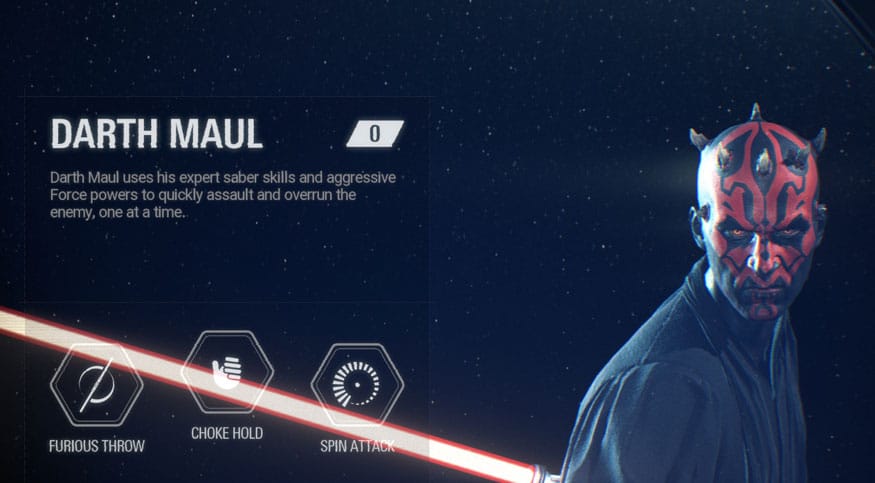 Darth Maul is one of the primary antagonists of Star Wars Episode I: The Phantom Menace. His iconic dual-bladed lightsaber appears in full-force in the Battlefront II E3 trailer; no doubt it’ll be handy in quickly cutting down foes.