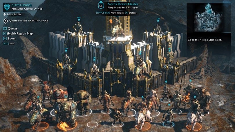The attack on a Fortress starts when you reach the mission starting point and progress it. These are usually located just outside the Fortress and are easy to reach. Before you begin your assault, you can choose to lighten the defenses of the Fortress by eliminating some (or all) of the captains and Warchiefs defending it.