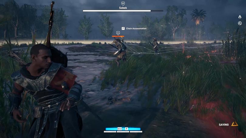 The next special wave of adds are the Sobek’s soldiers – once again, they spawn from the ground and are real enemies that you can fight the way you fight them in the open world. The boss does a specific unique move (animation) to announce the spawn of the soldiers and this will give you enough time to get closer to the boss’ aura. You have a few seconds to “ambush” and assassinate one or two (if you have the additional ability unlocked) of the soldiers quickly. I suggest you save your Overpower Attack for one of them, then use the Overpower Chain Combo (if you have the skill) to kill off one more extra opponent nearby.