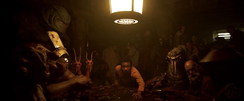 Lando’s (Donald Glover) first appearance is in the next shot. I wonder, could this be the very table where Han wins the Falcon?