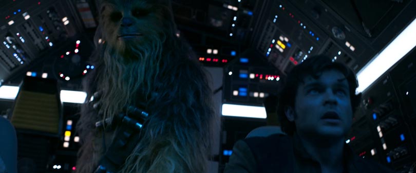 The moment Han finds out Chewie is actually 190 years old. And, by the way, the Falcon’s interior – have you noticed how newer, more cleaner and polished everything looks. No need to throw your fist at the terminals to force them to switch on. I looked really hard through the trailer, but could not spot a shot with the famous pair f dices hanging from the top of the cockpit.