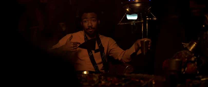 Lando never looses his Cool! Even though we see this next shot later in the trailer, it is more than obvious that it is from the same scene at the table when we saw Lando’s first appearance in the trailer. Scenes in trailers never follow the events of the movie they advertise.
