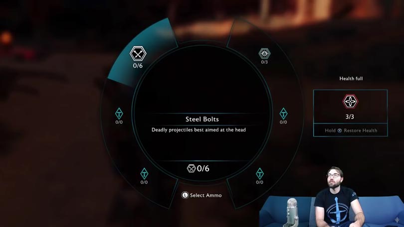 The elements we know details about so far are the ones on the top left and right – the left ones are the crossbow bolts that I told you about earlier and on the right side are the Concussion Bombs – area-effect explosives that damage, stun or knock down enemies. More on bolts later in this post.