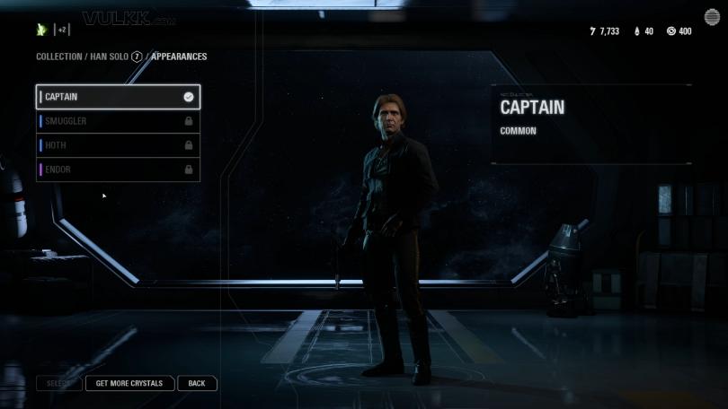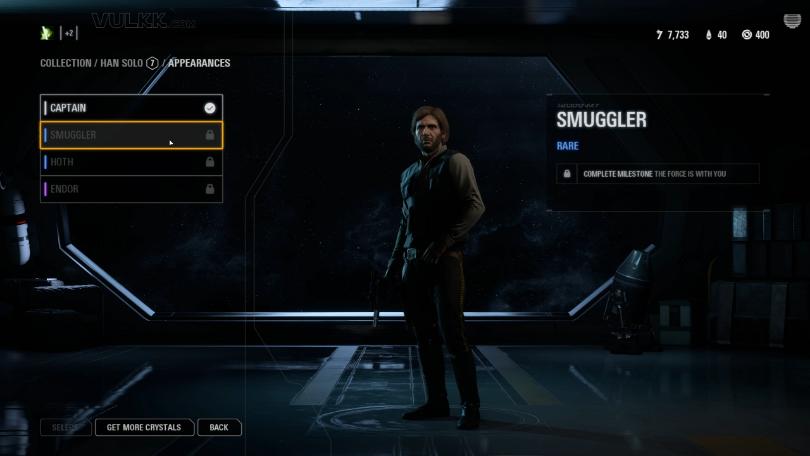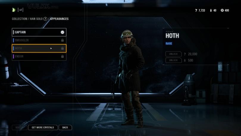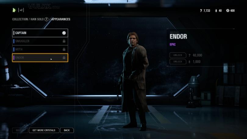 Han receives three new appearances – the rare Smuggler and Hoth, plus the Epic Endor outfit.