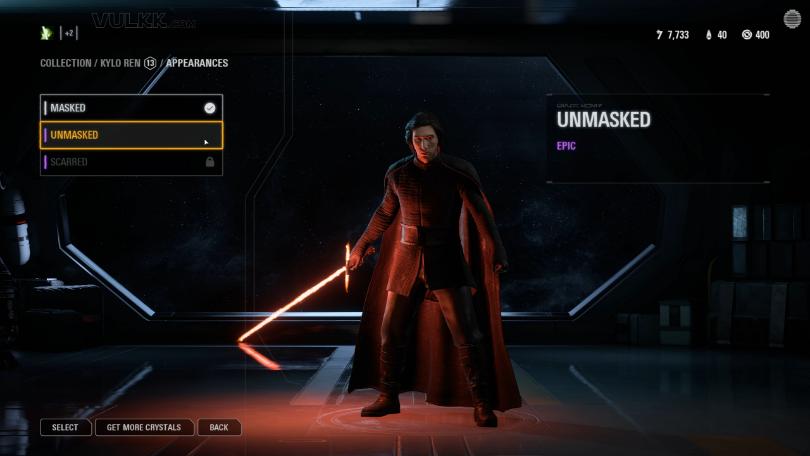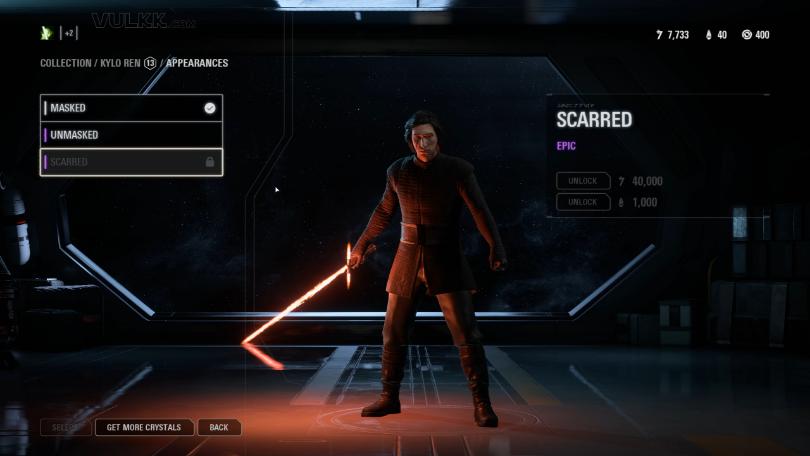 Kylo Ren is now available in Unmasked and Scarred versions – both Epic. The price for his outfits is Epic too!