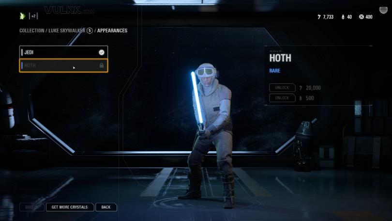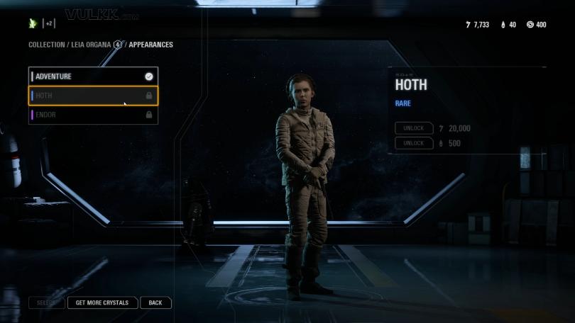 The new game update “Night on Endor” that DICE launched today introduced 23 new Heroes Appearances for all some of the special hero and villain characters. The outfits can be purchases with crystals, which is the In-Game currency that you buy with real life money, or they can be obtained for Credits. The amount of credits depends on the rarity of the outfit.