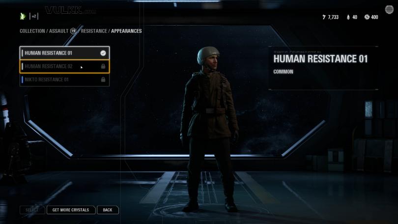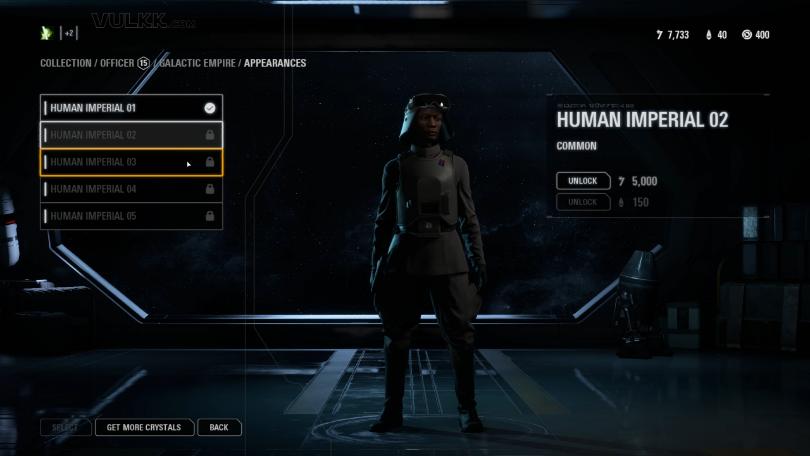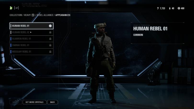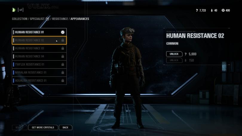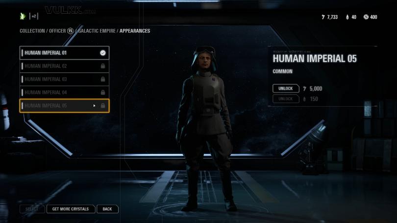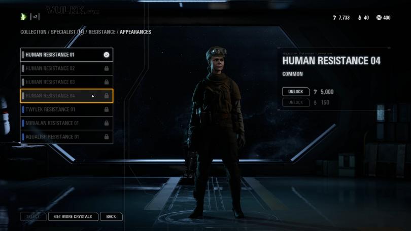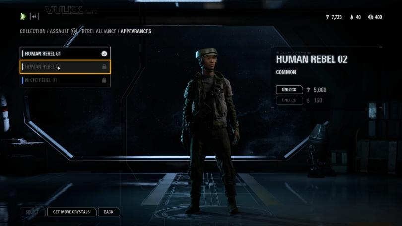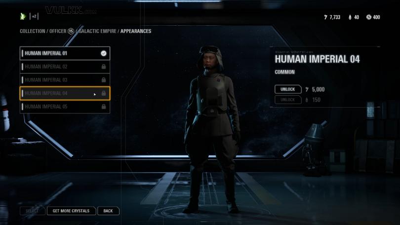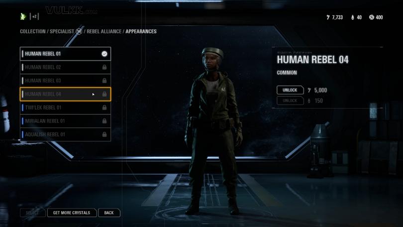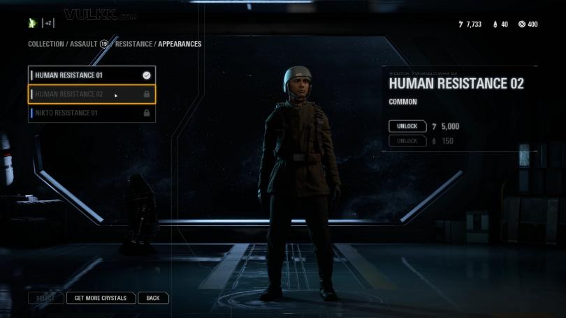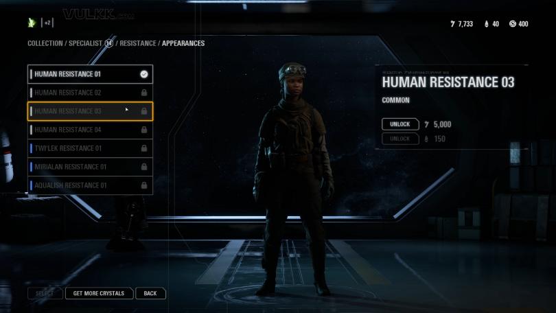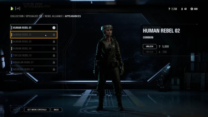 Usually the Human appearances are “common” rarity and cost 5000 Credits or 150 Crystals. The more expensive “Rare” quality are usually the non-human editions of the Troopers. Spanning from Zabrak, through Quarren to Weequay and even Duros, the number of alien species is impressive. All of the Rare skins cost 20 000 Credits to unlock or you get them for 500 Crystals each.