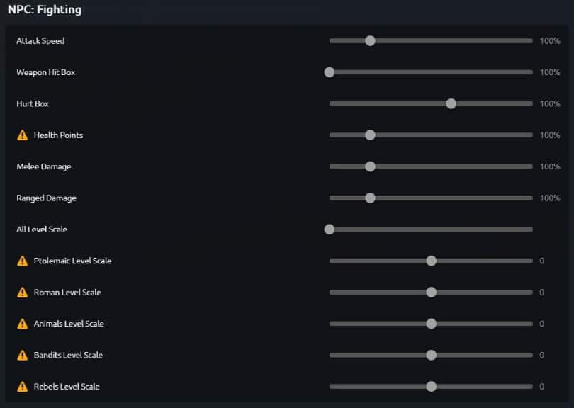 As you play around with the various settings and filters, be mindful that you may create serious problems for yourself. Altering the default behavior of NPCs, your Hero, the environment, can have devastating effect to the living and breathing world of Assassin’s Creed: Origins.