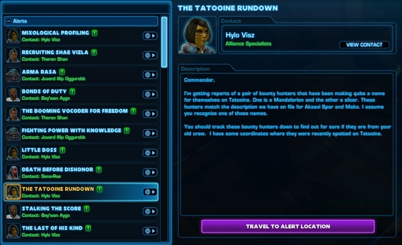 With the release of update, Bioware introduced two new Alliance Mission Recruitment Alerts – one for the Jedi Consular classic companion Felix Iresso and one for the duo Mako and Akaavi – classic Smuggler and Bounty Hunter companions.