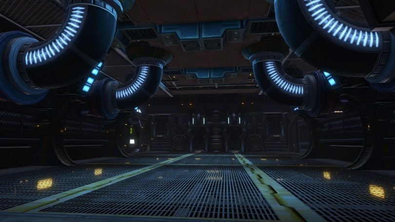 To access the Carrier, you can take the taxi transport located right in the back of the landing area. Here are six more additional rooms that can be unlocked. The Reactor Room is down to the south (as you look it on the map). On the right hand side is the training room with a small vendor droid and a terminal that allows you to spawn any of the three training dummies – Operations, PvP and Healing.