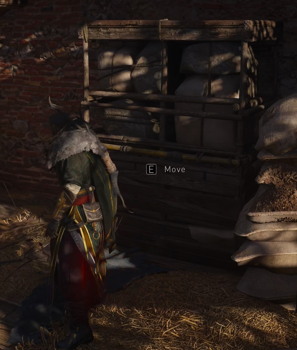 Pick up the key for the church’s door. It’s on a bench in the church’s front yard. You can use the monks that roam about as cover. They conveniently take exactly the route you need – to the key and then to the door. Unlock the door and