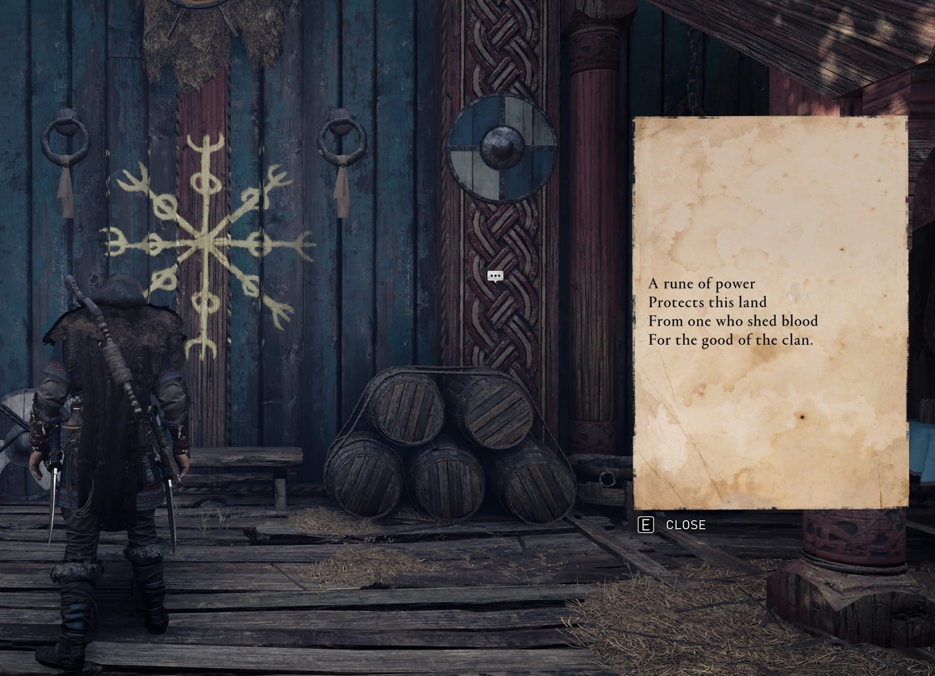 After that you will wake up back in Ravensthorpe, in front of the Longhouse. Inspect the rune engraved on the house’s main door to see this: