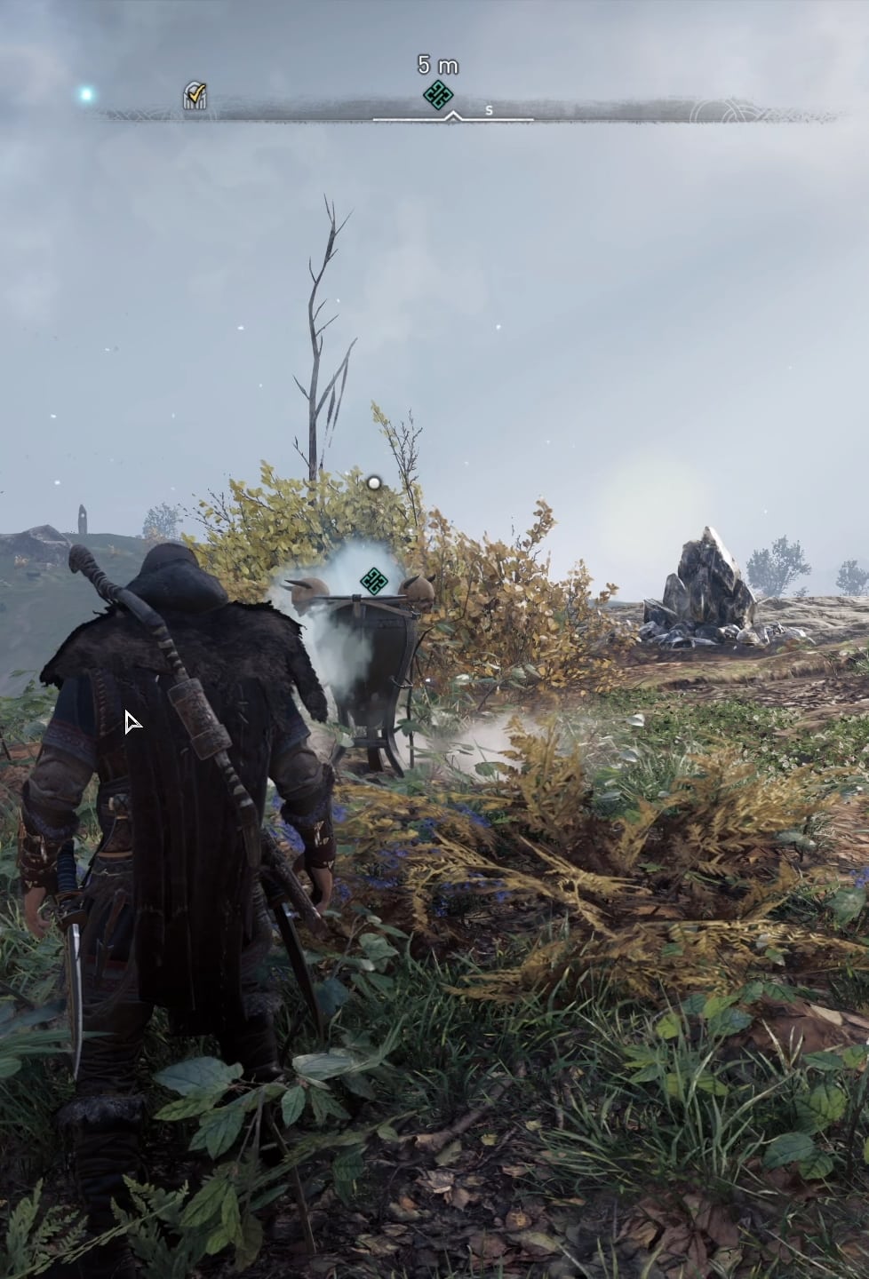 Use Odin’s Sight to discover spots where the wounded man from the cinematic you just watched may have gone.