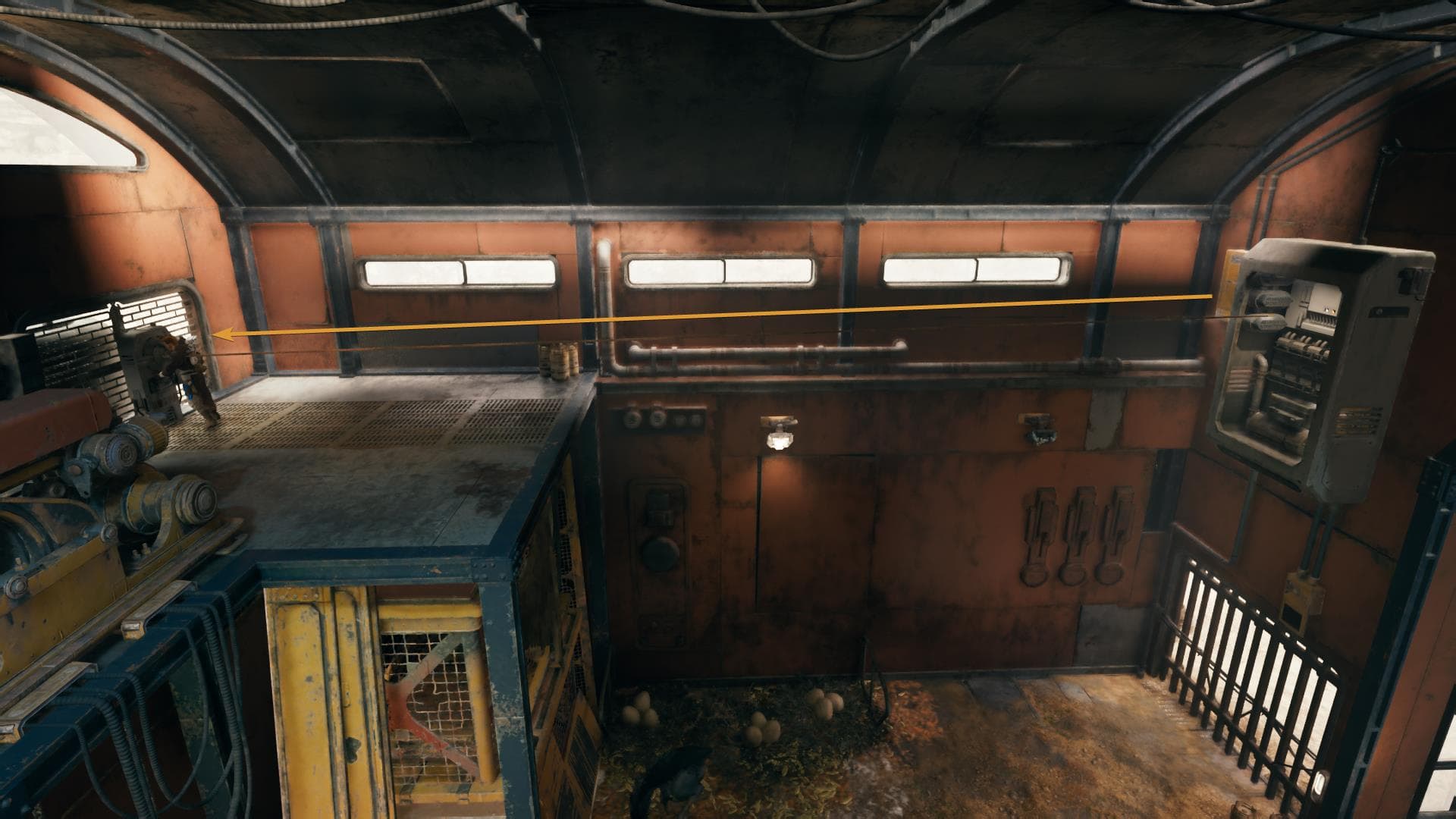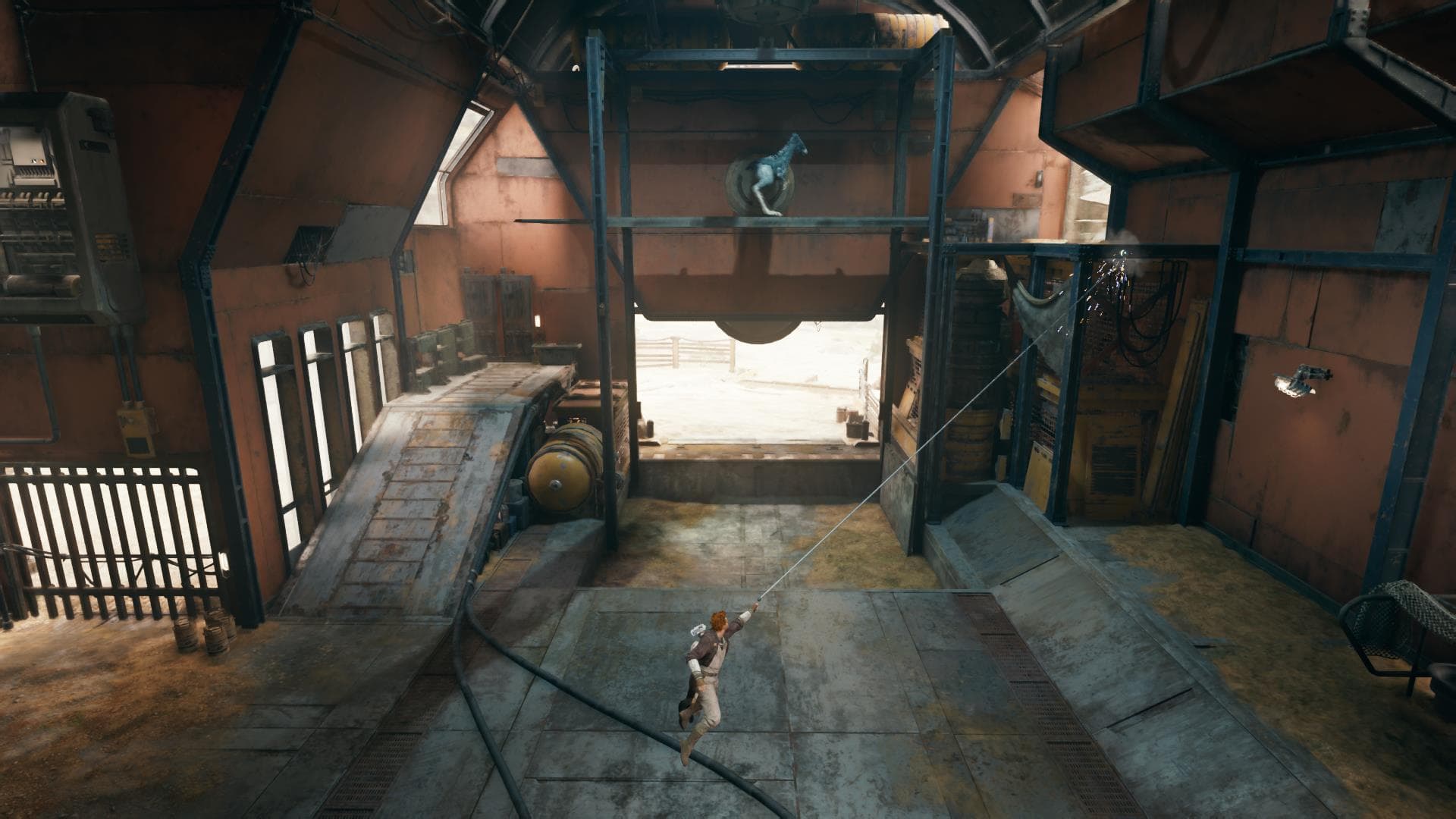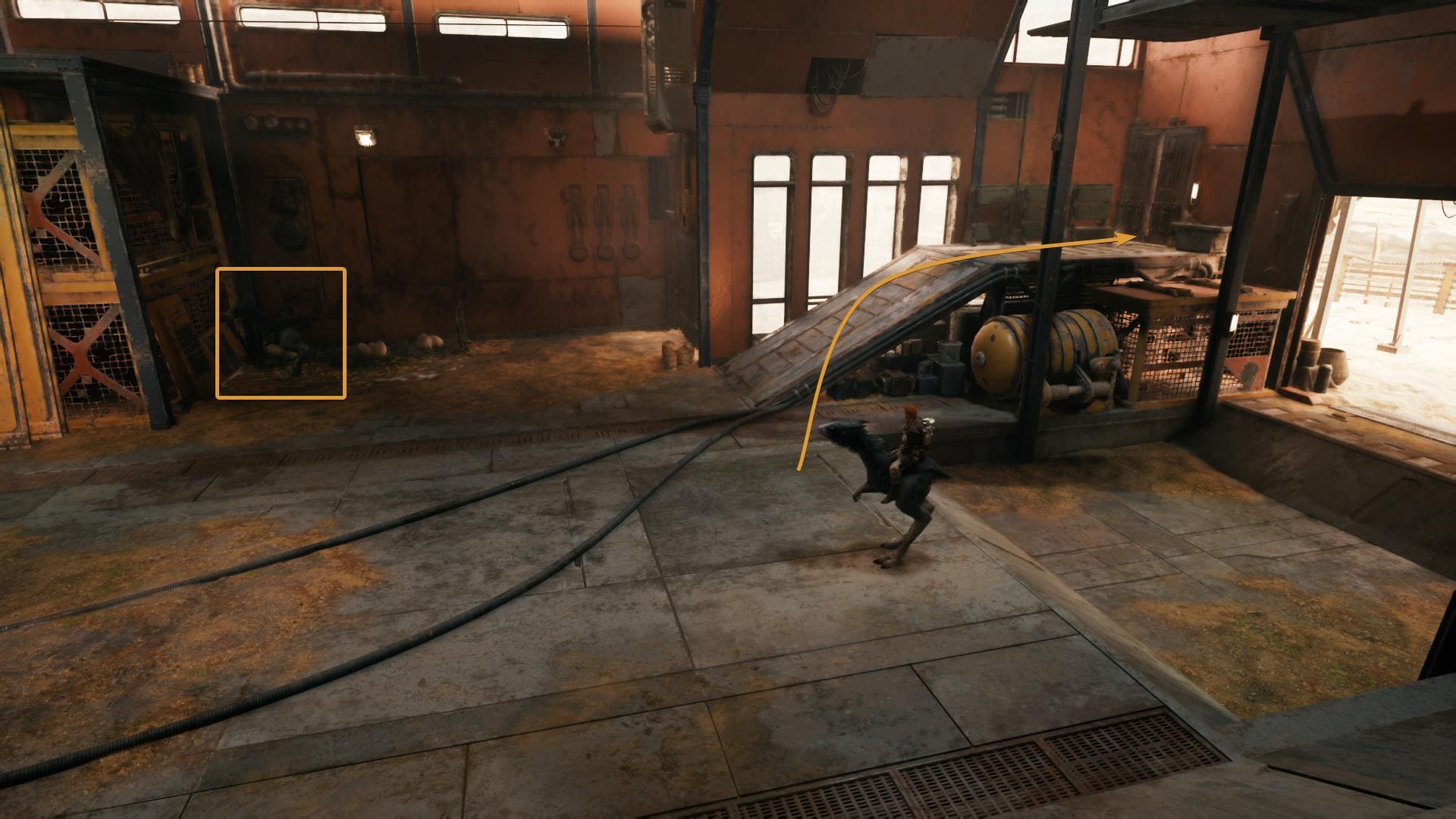 Use the ascension cable to get back to the Nekko and take it outside. You can also use the second Nekko to jump off its back and grab onto the platform’s edge.