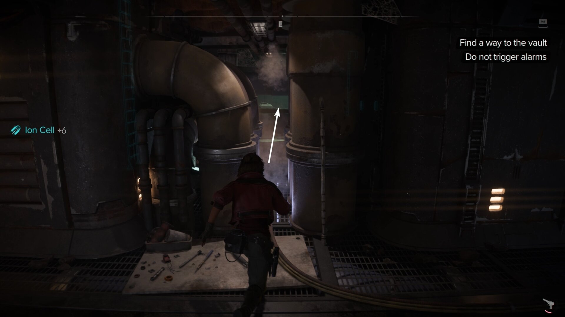 When you get through the vent, you’ll find a large chest to the northwest that contains upgrade materials. Once you loot the chest, look east and go through the pipes.