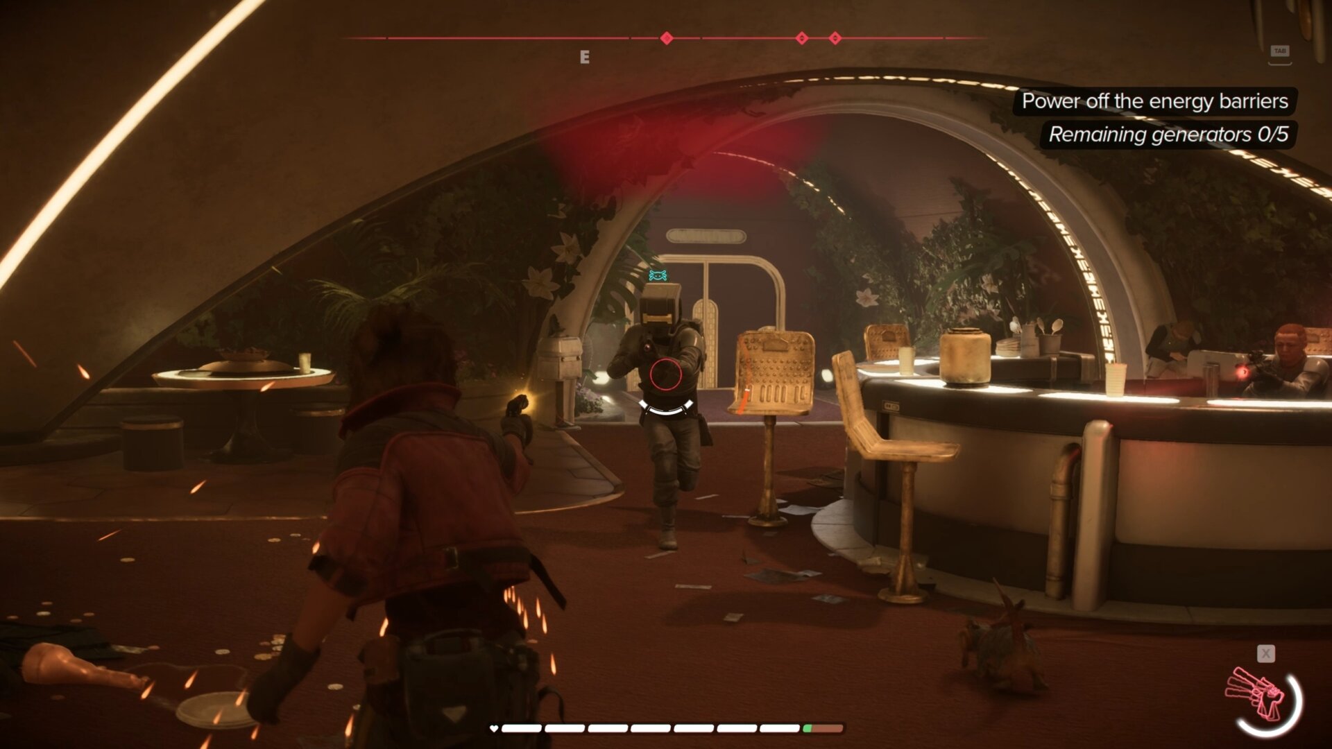 Once you reach the second gate, Zerek Besh enforcers and agents will come out from the sides of the room. More will come in waves, so use the brief respites between waves to take down the 5 generators.