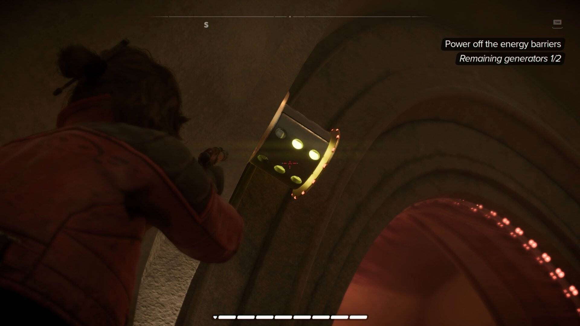 Numerous ray shields will block your exit. Riko will slice into the defenses to expose the power generators found on the arches near the shields. Shoot down the two generators above the barrier to get through.