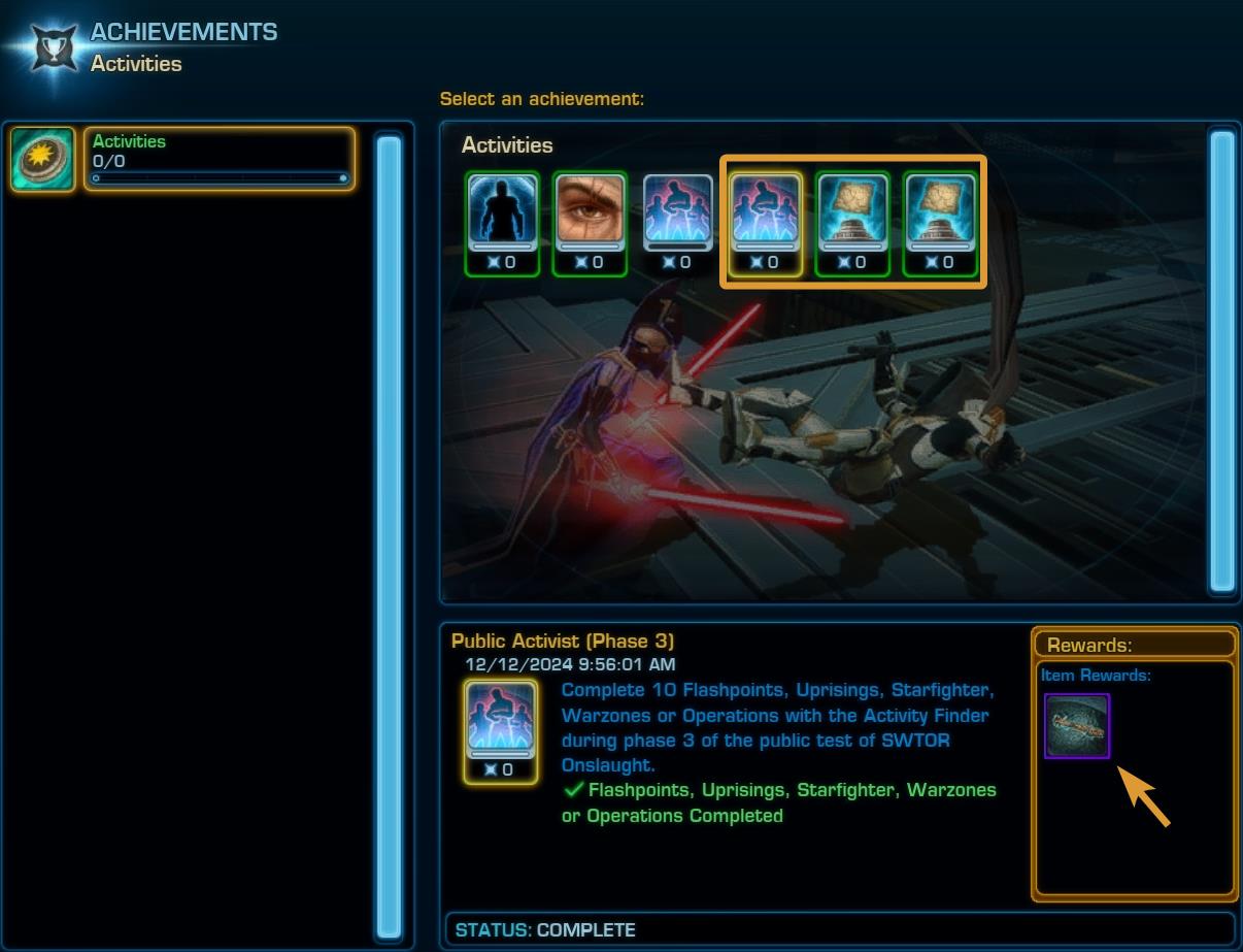 SWTOR’s Update 7.6a fixes progression-halting bugs with a few quests, item deconstruction, black hair color issues, and the SH conquest bonus. It also adds achievements for Propagator Core XR-53.