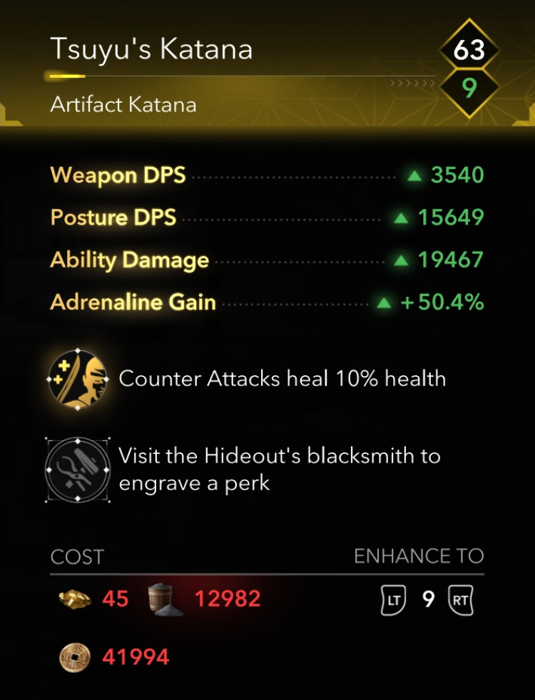 When you upgrade your Hideout’s Forge to Tier 6, you’ll gain the the ability to Enhance your gear to Artifact and Mythic quality. This initially starts as minor stat boosts, but the more you invest into the gear, the better it gets.