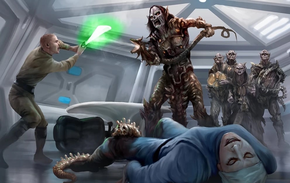 Additionally, they are notoriously hard to kill. Lightsabers or blasters are ineffective against a Drengir, as they can continue to live even when split into two. The most effective way to eliminate them is by throwing them into the vacuum of space.