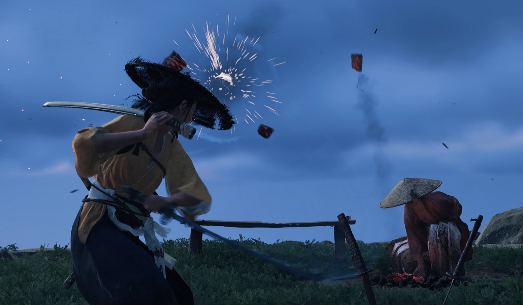Upon slicing the bamboo, your maximum Spirit is increased by 1. This will be incredibly useful for fights down the line as you can restore more health. Follow Hanbei to retry the hot coal trial, only this time you’ll be able to strike down all the coals when wielding Dual Katanas.