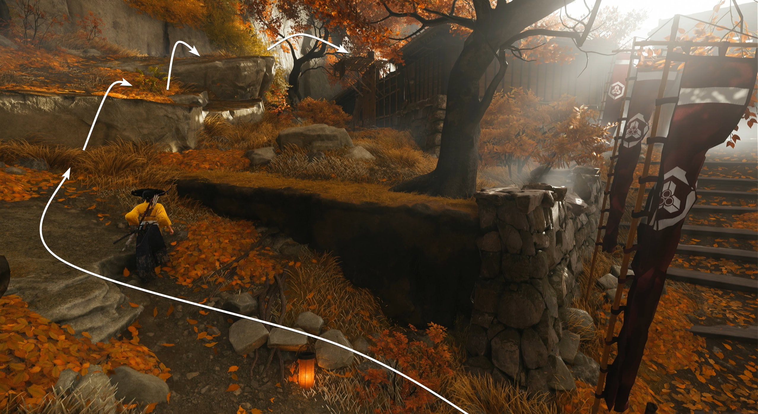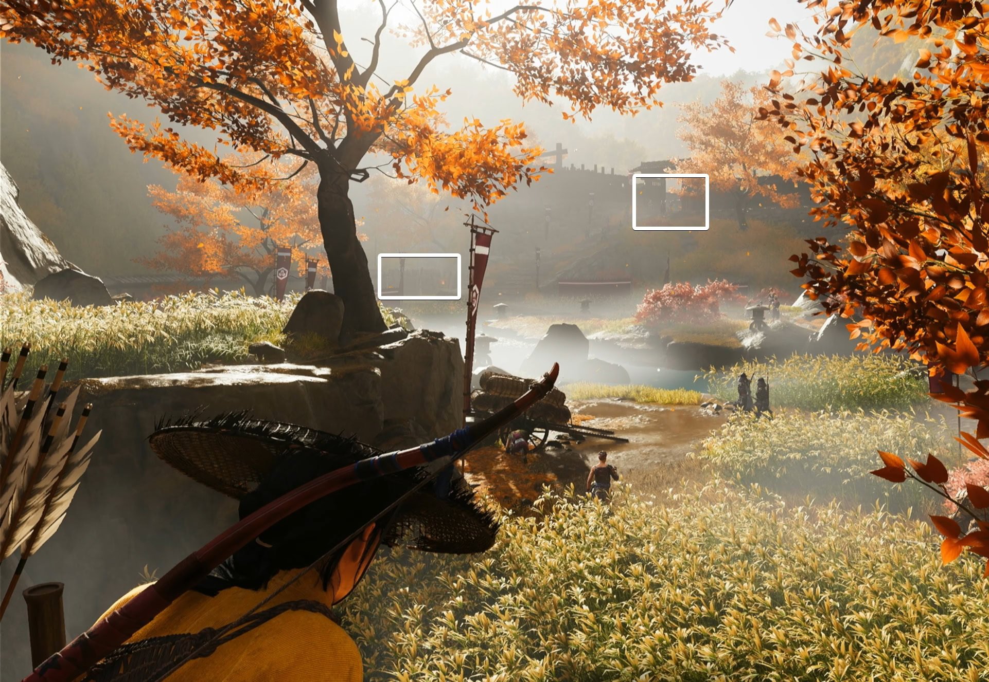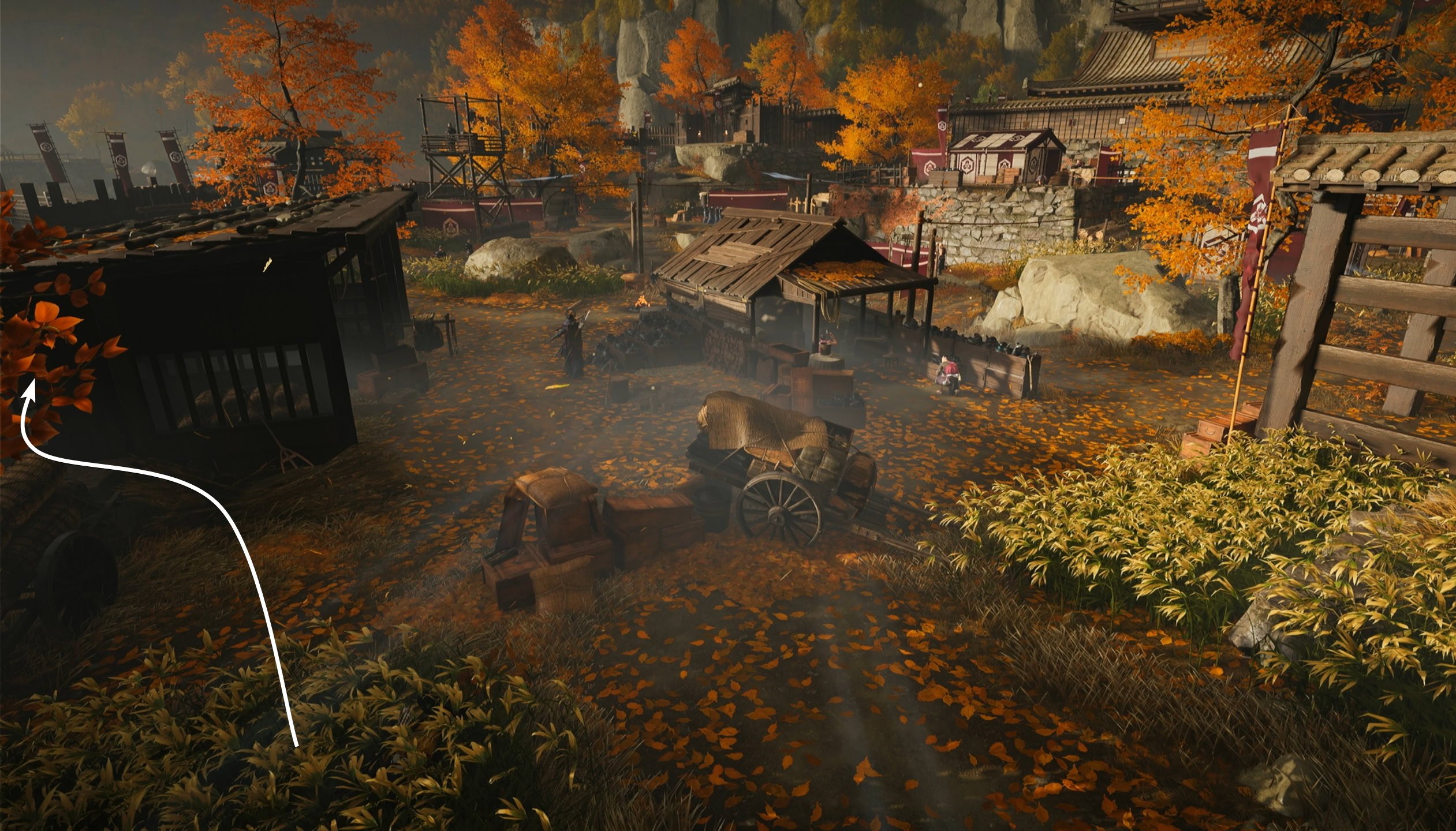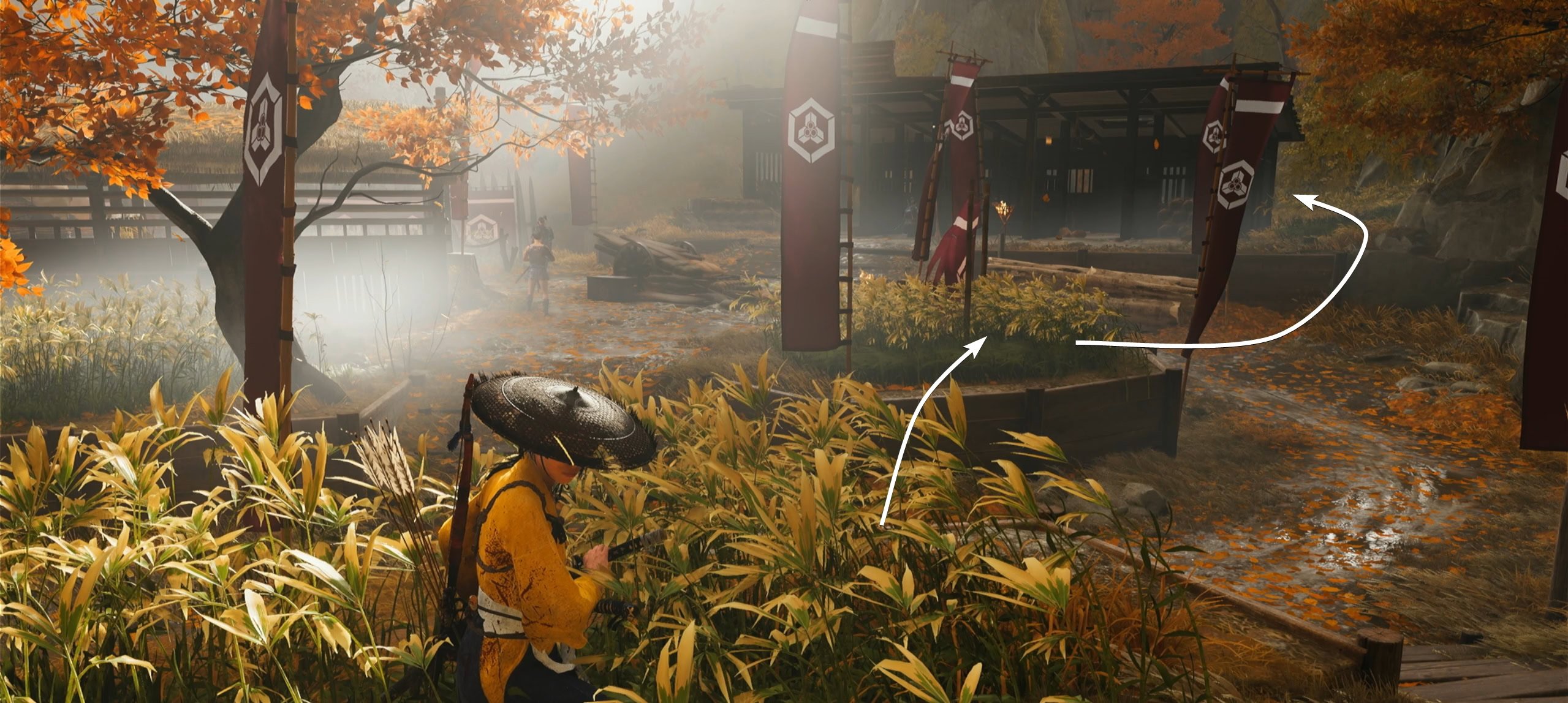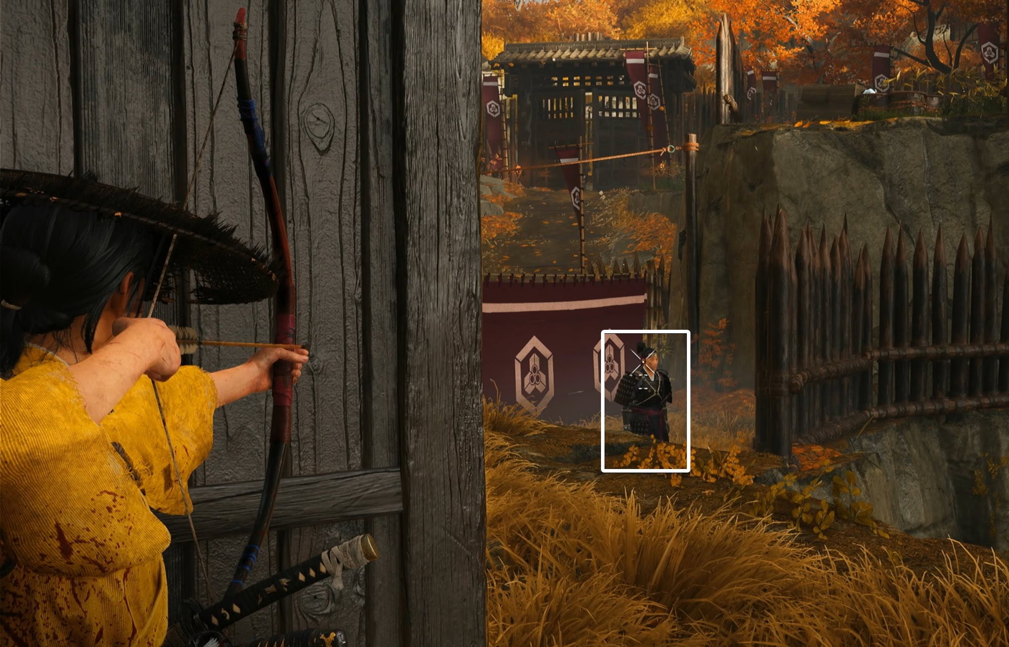 It might be tempting to assassinate the outlaws one by one to sneak through, but this is exceptionally dangerous. It’s easy to alarm them all and be surrounded. The outlaw with the odachi (the long katana) can one-shot you if you’re not careful.