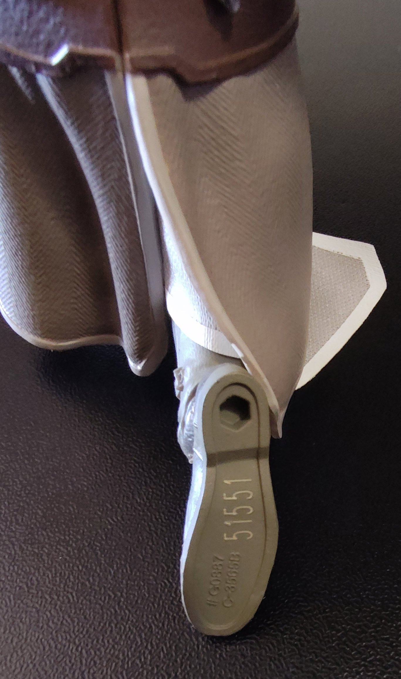 The bottom of the boots have a hexagon hole on the heels which would allow the figure to be placed onto a hexagon peg stand. Unfortunately, the figure doesn’t come with one and this feels like a loss as it can be tricky to keep it stationary on a flat surface.