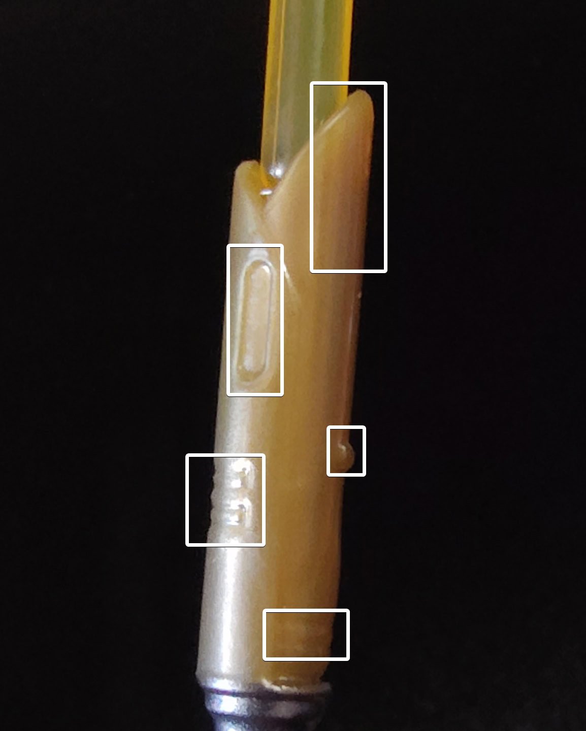 Another flaw is that the brown portion in the middle doesn’t go up on one side of the hilt where it expands into the thick end. It was kept limited to a portion of the center hilt.