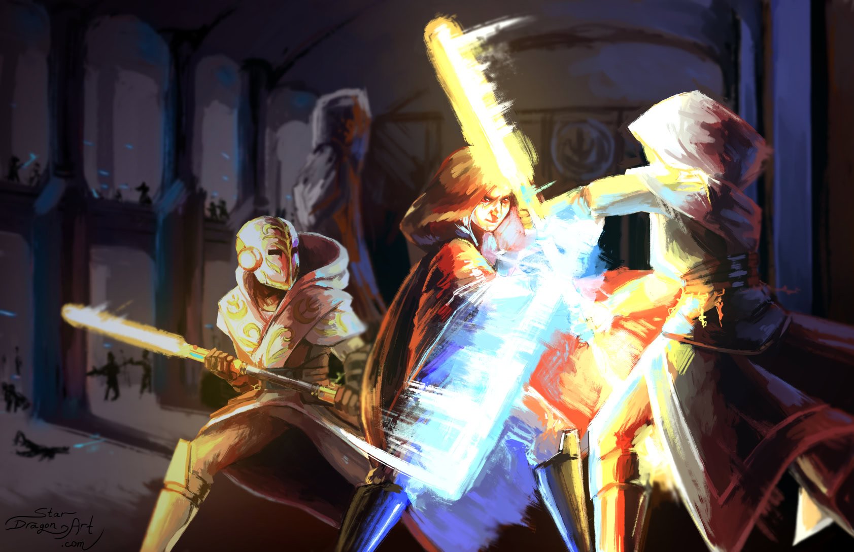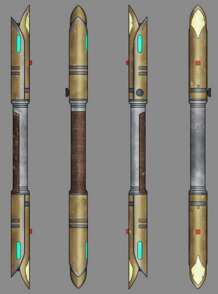 “An ancient, honored heritage within the hallowed halls of the Jedi Temple was the role of the Jedi Temple Guard. They carried imposing thick, double-bladed weapons that produced a rare and distinctive yellow blade.”