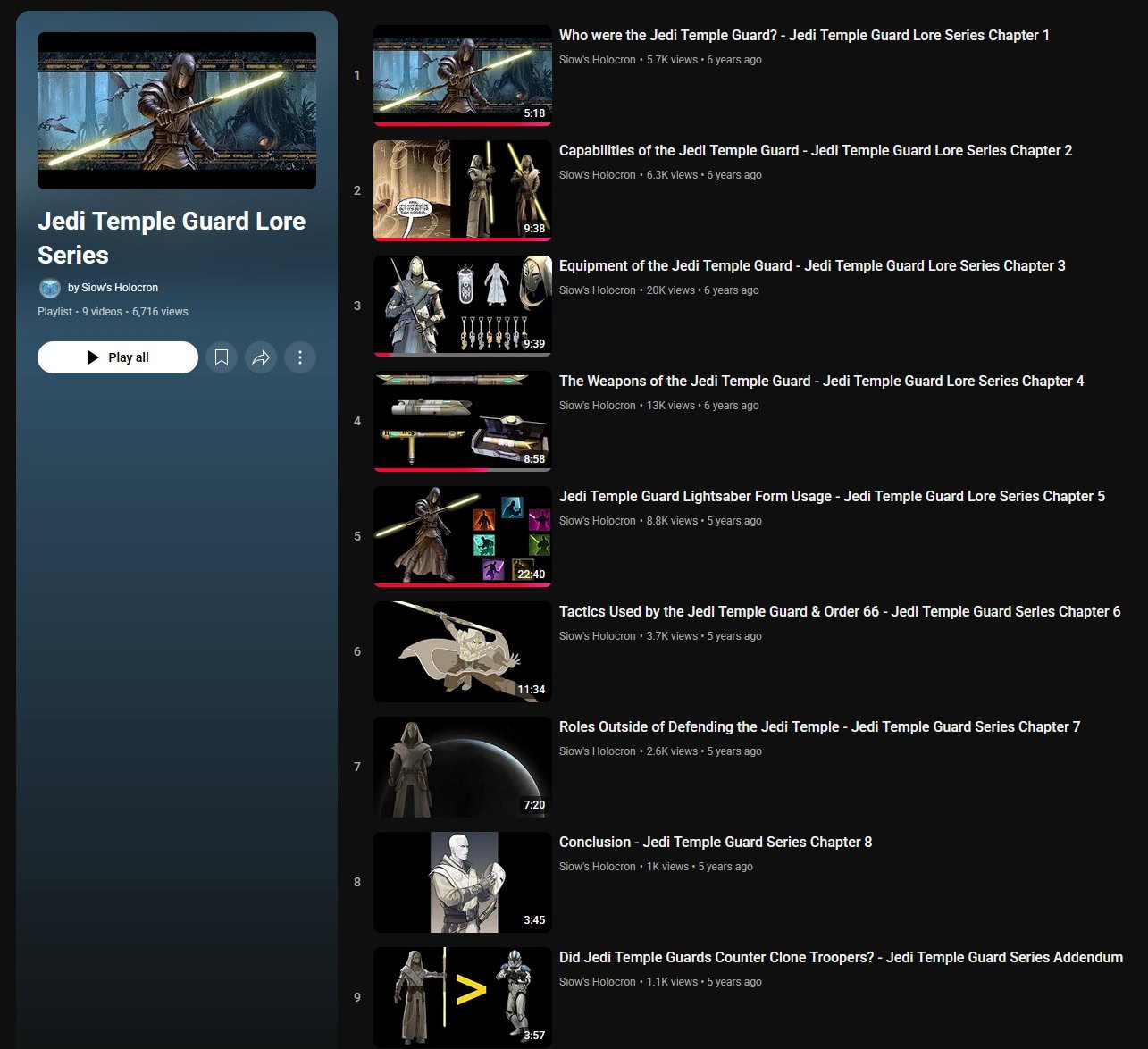 If you would like to learn more about Jedi Temple Guards, I recommend that you check out my Jedi Temple Guard Lore Series on YouTube! I go more in-depth on Jedi Temple Guard lore, equipment, and theories on their role and combat techniques.