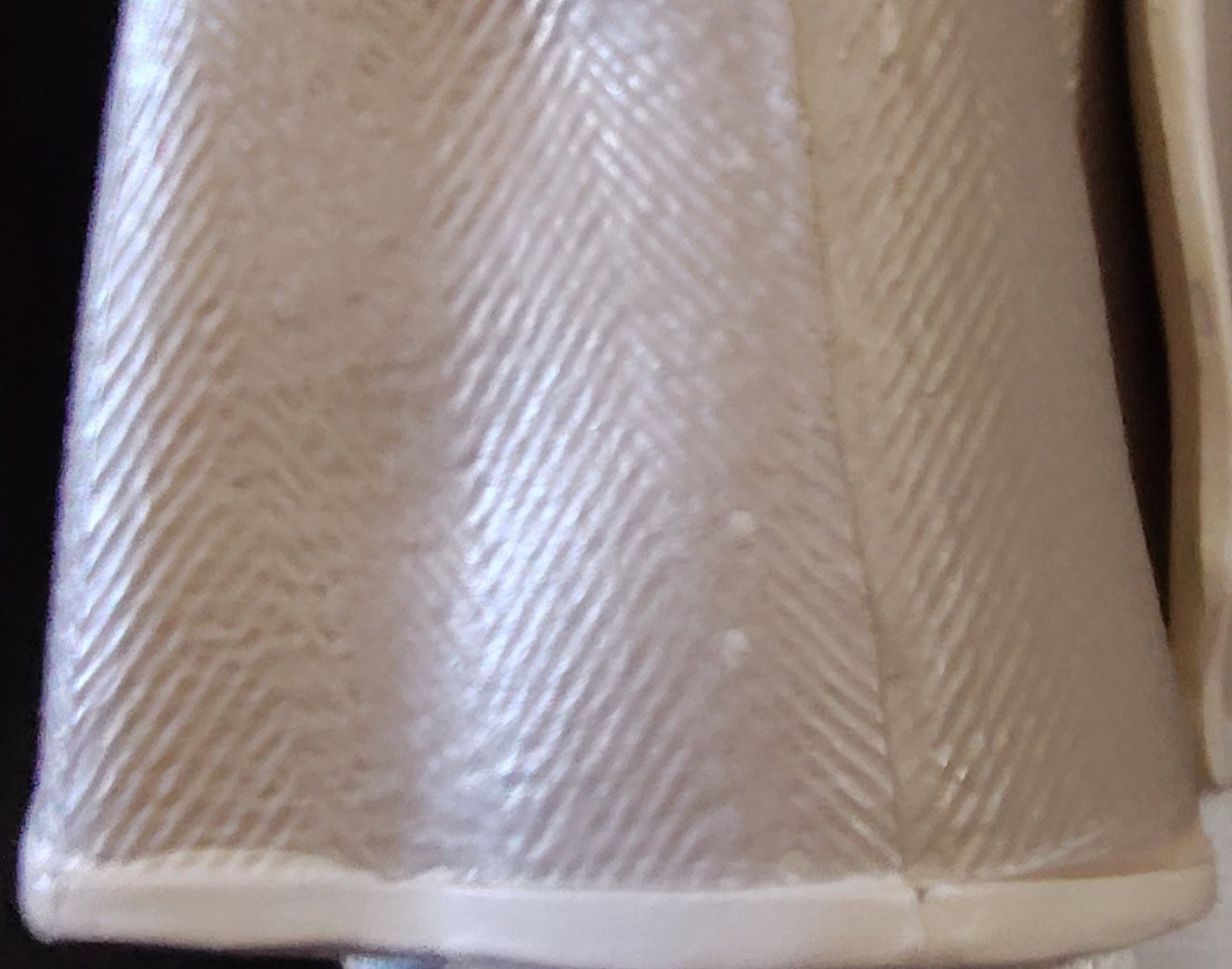 Underneath the skirt is the cassock which is made if a finely knit cloth with an acrylic light beige trim. The fabric is very thin which makes it easier to position the legs, but doesn’t give the figure the heavy fabric look seen in the animated series.